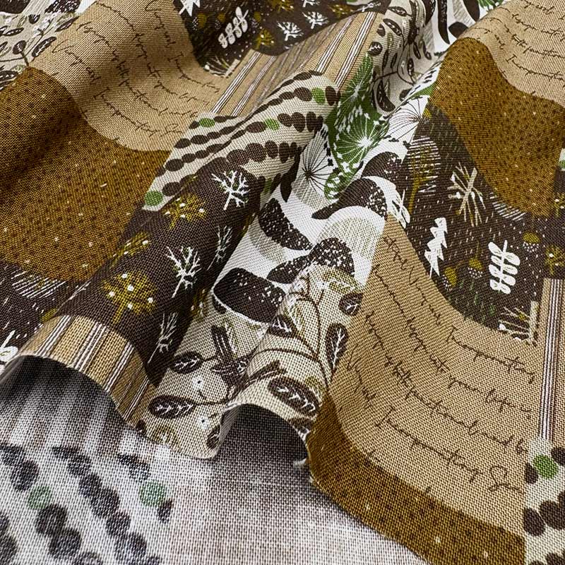 Cotton print fabric with patchwork design that you can enjoy a variety of patterns on one piece.