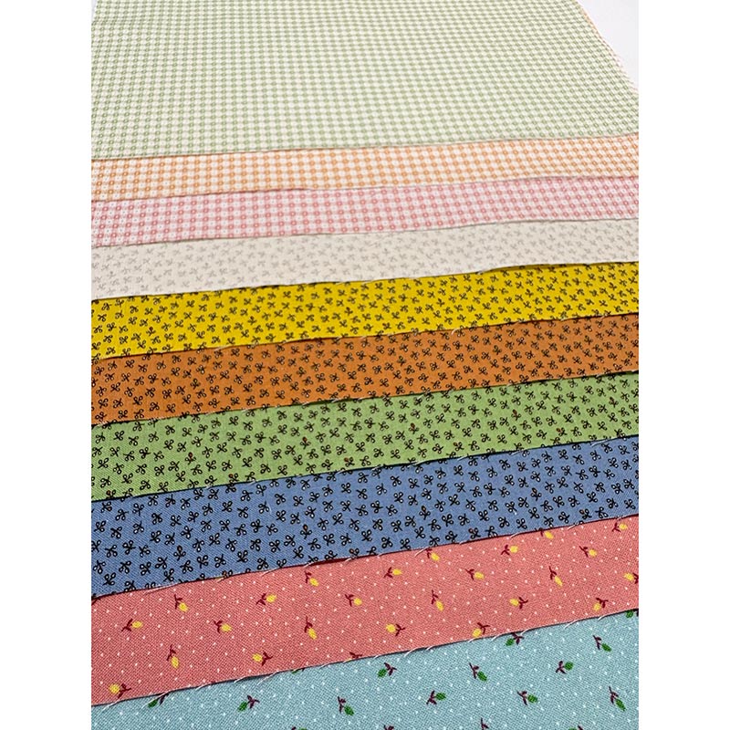 This bright and fun fabric set features a balanced mix of nostalgic small floral patterns, checks, and pretty motifs.