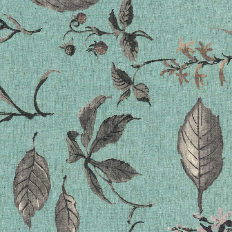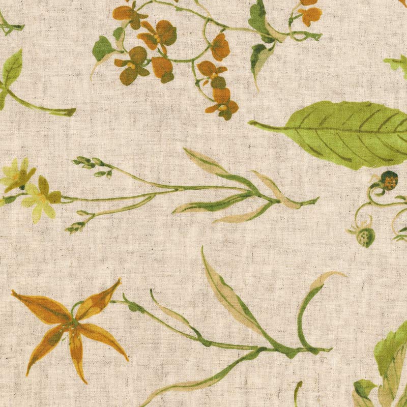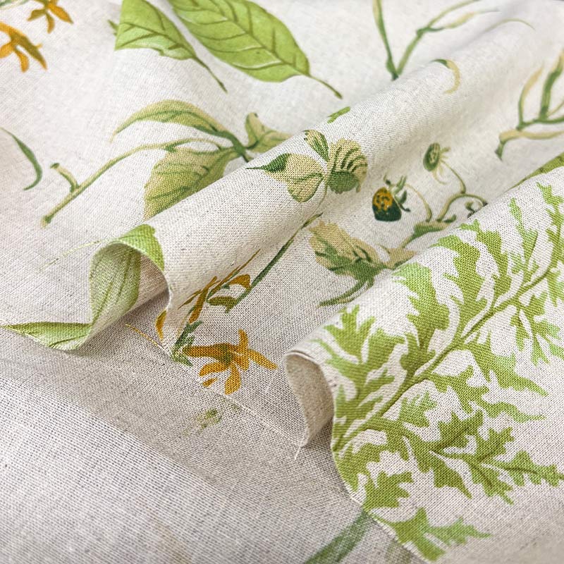Line cotton blend fabric with with large natural flower patterns.