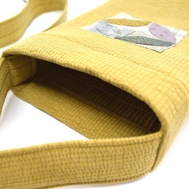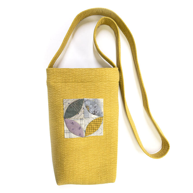 Sacocle with 1/4 of "Orange Peel" is appliqued on a mustard colored sacoche.