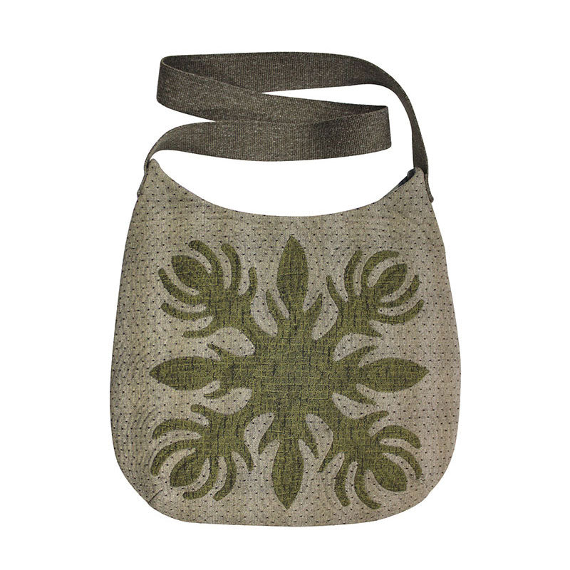 Kit of Hawaiian quilt bag with a balloon-shape created by inserting both pleats and darts.