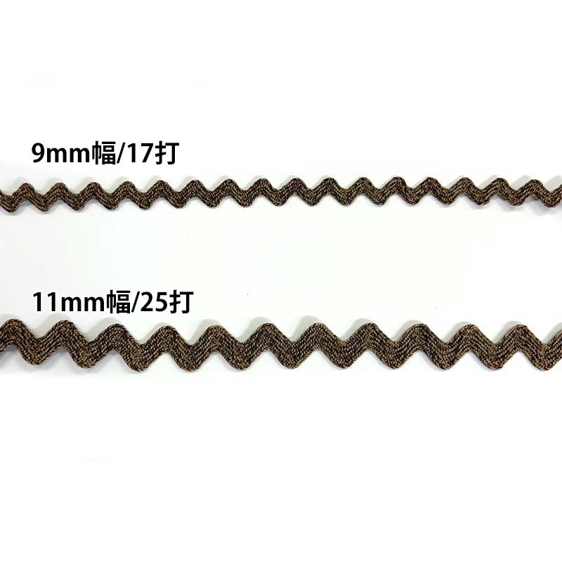 Polyester Ricrac Ribbon, 9mm width / 17 waves (BEL-1111), Mocha brown