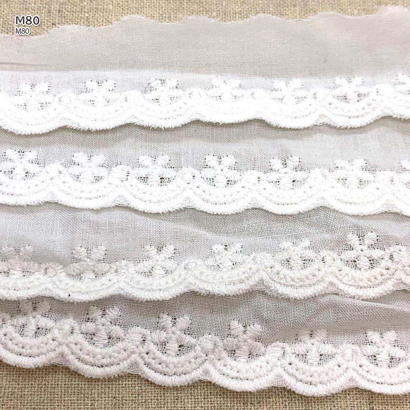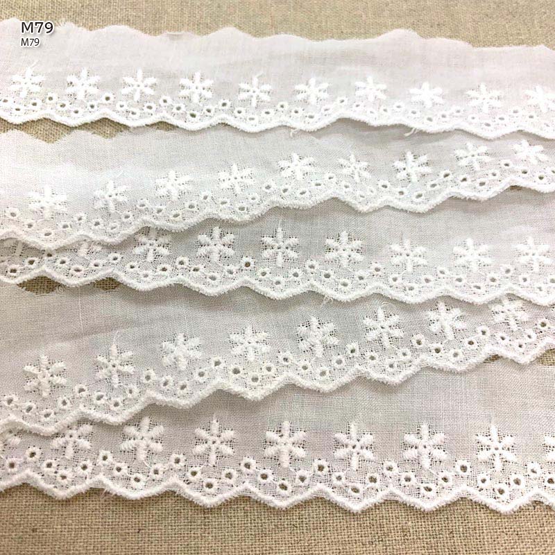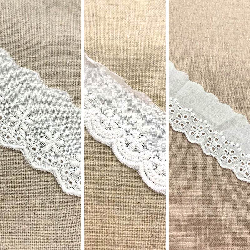 Cute lace embroidered on cotton fabric.