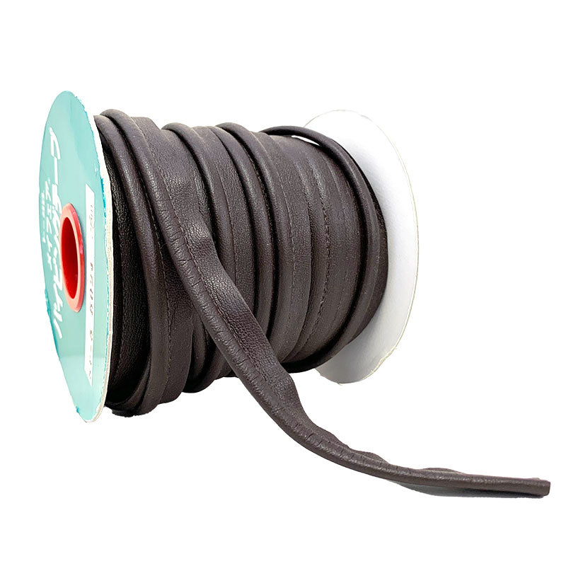 Dark brown piping tape made from synthetic leather material.