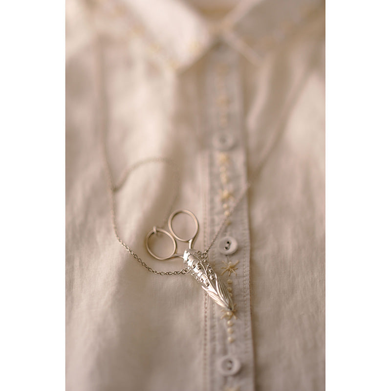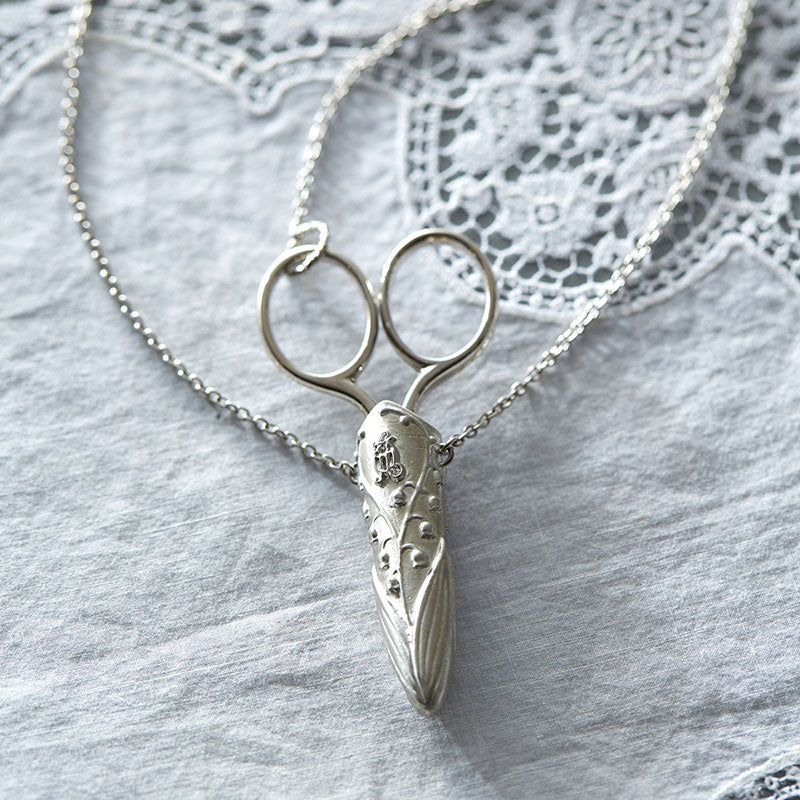 The small scissors are connected to the necklace by a chain so you don't have to worry about losing them.