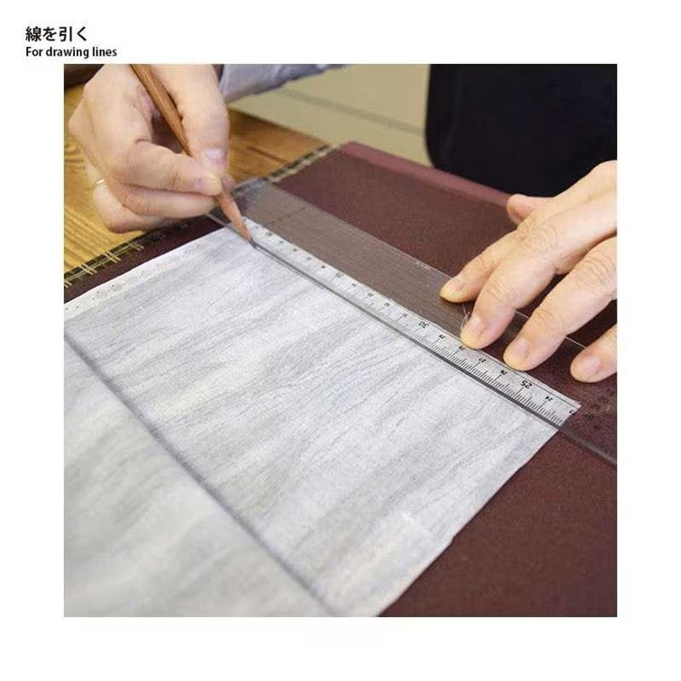 This makes it easy to mark lines and patterns (pieces, appliques) on fabric as it prevents it from slipping.